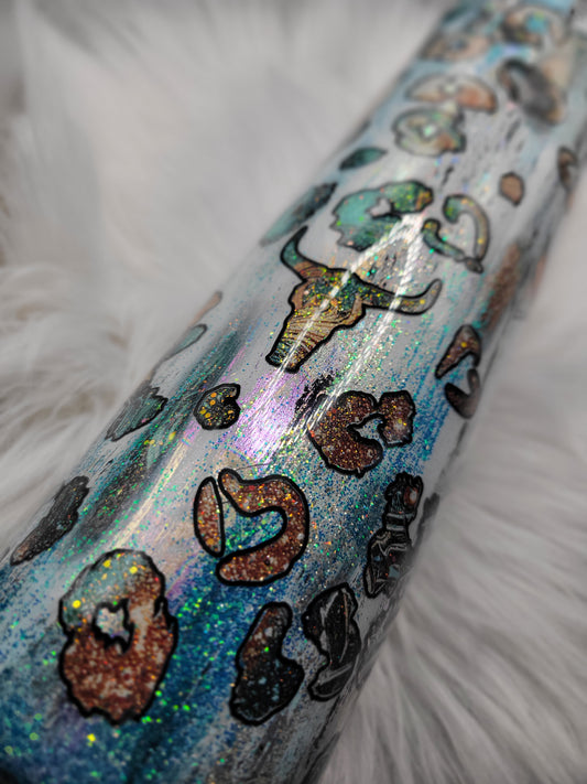 32oz western bull skull tumbler with Snow Globe Bottom